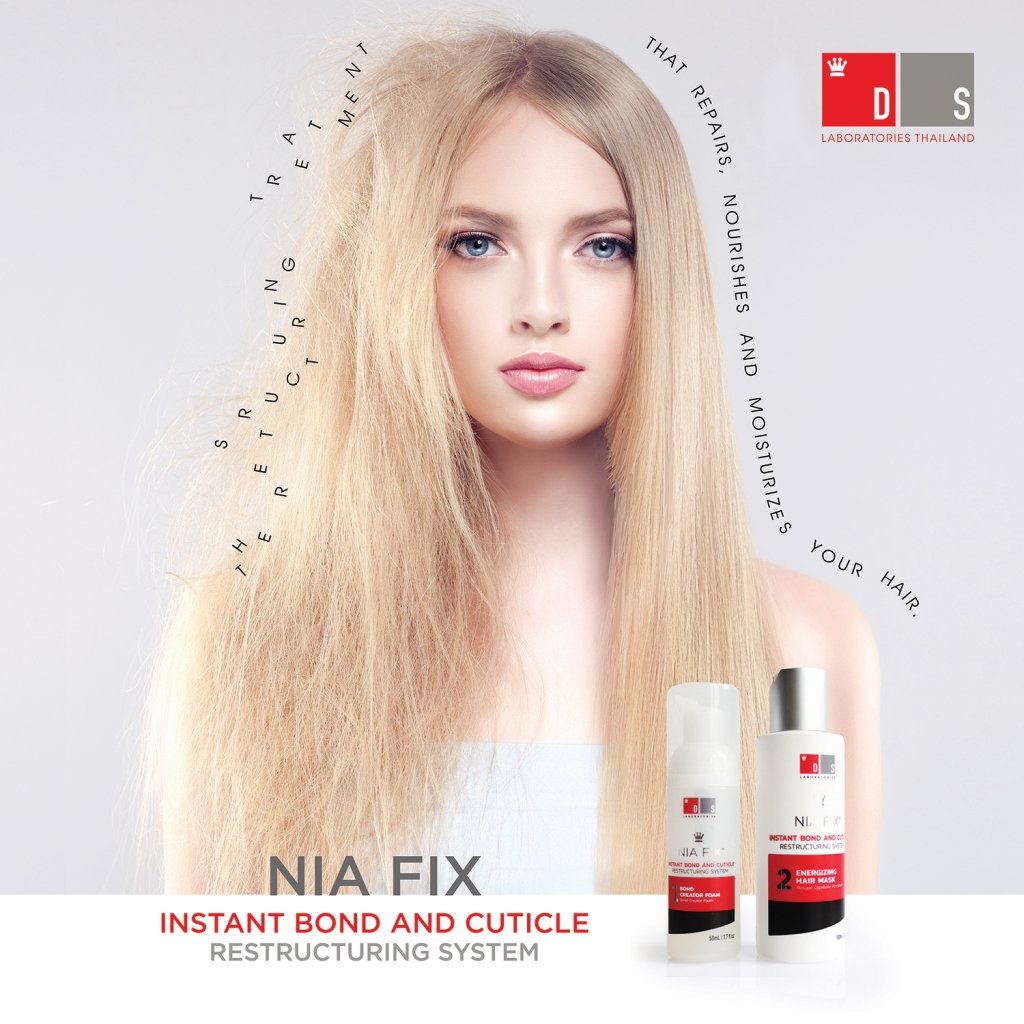 - Opakované barvení a zesvětlování vlasy stále více poškozuje. Jsou pak suché a polámané. Kúra NIA FIX restrukturalizuje vlas zevnitř. Výsledkem jsou zregenerované, pevné a pružné vlasy od kořínku po konečky.