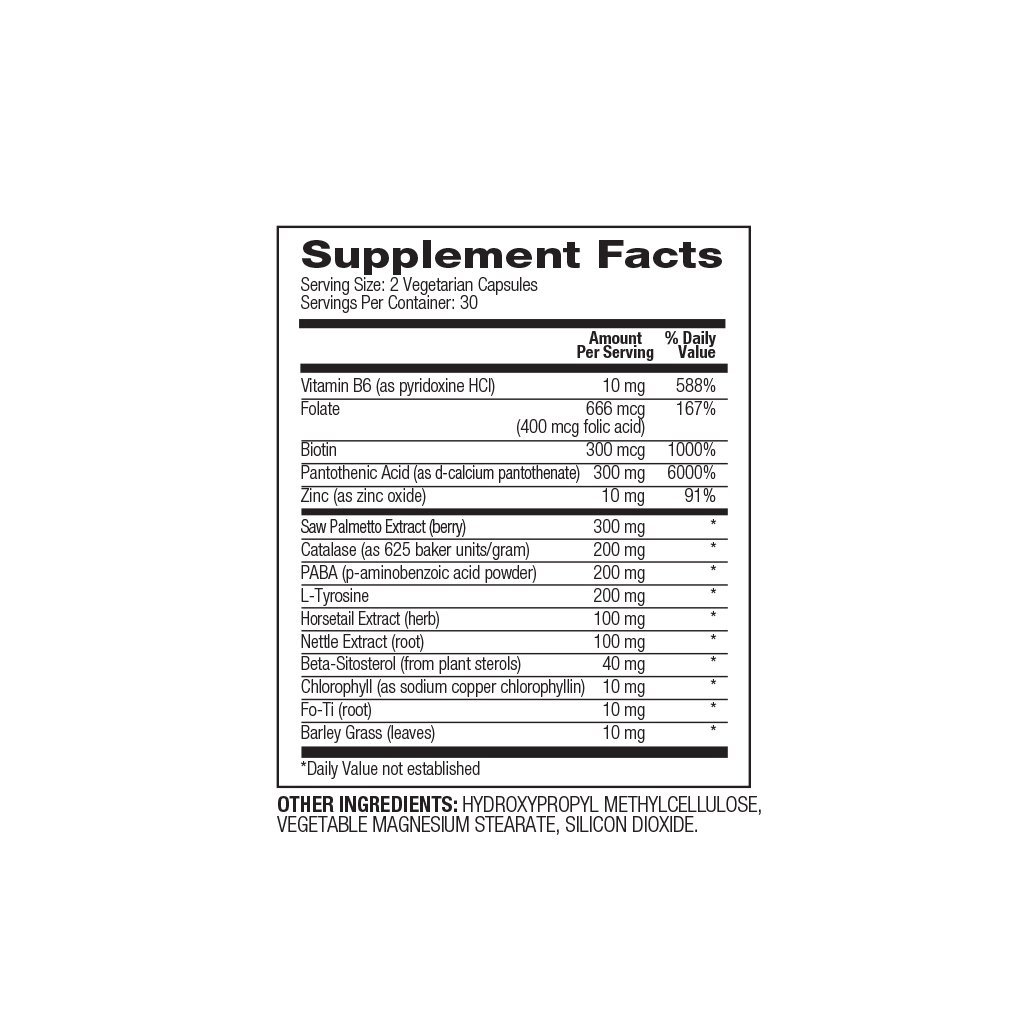 Kyselina listová ‒ je důležitá pro růst zdravých tkání a správné funkce buněk, napomáhá produkci zdravé pokožky a vlasů a přispívá ke stálosti jejich barvy.