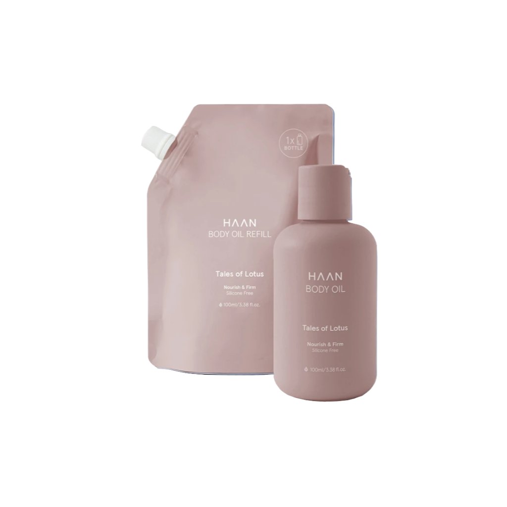 Inovativní design tělového oleje je navržen k opětovnému doplnění náhradními náplněmi.