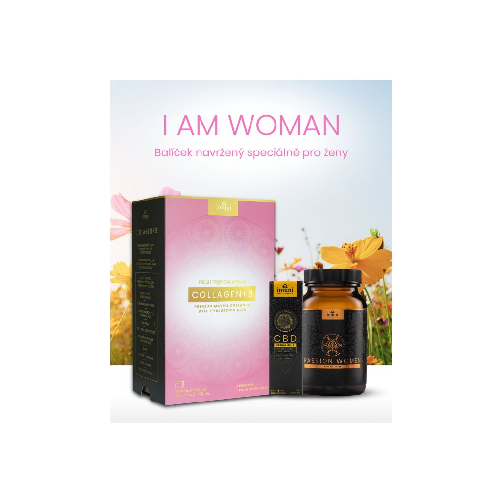 Pro udržení krásného, zdravého těla jsme připravili balíček, který obsahuje produkty určené speciálně pro ženy. Zakoupením balíčku I AM WOMAN získáváte certifikované přípravky, které aktivně pomáhají udržet hebkou pokožku, pevné nehty, husté vlasy, uvádí do harmonie váš hormonální systém a celkově přispívají k udržení mladistvého vzhledu.