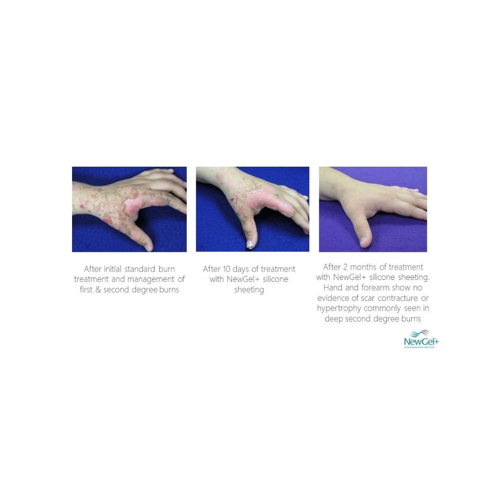 NewGel+ redukuje a vyhlazuje jizvy, způsobuje, že jizvy se stávají hladšími. Působí prostřednictvím kombinace okluze (uzavře jizvu před expozicí vzduchu), hydratace, zvýšení teploty pokožky a kontinuálního lehkého tlaku.