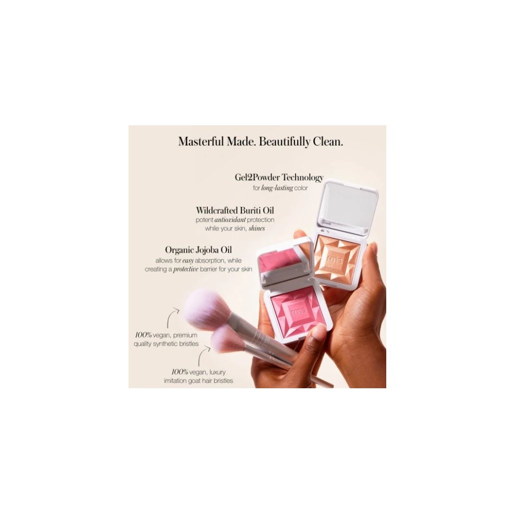 Pomocí RMS Skin2Skin Powder Blush Brush rozetřete ReDimension Hydra Powder Blush na tváře, můžete jej lehce aplikovat i na oční víčka.
