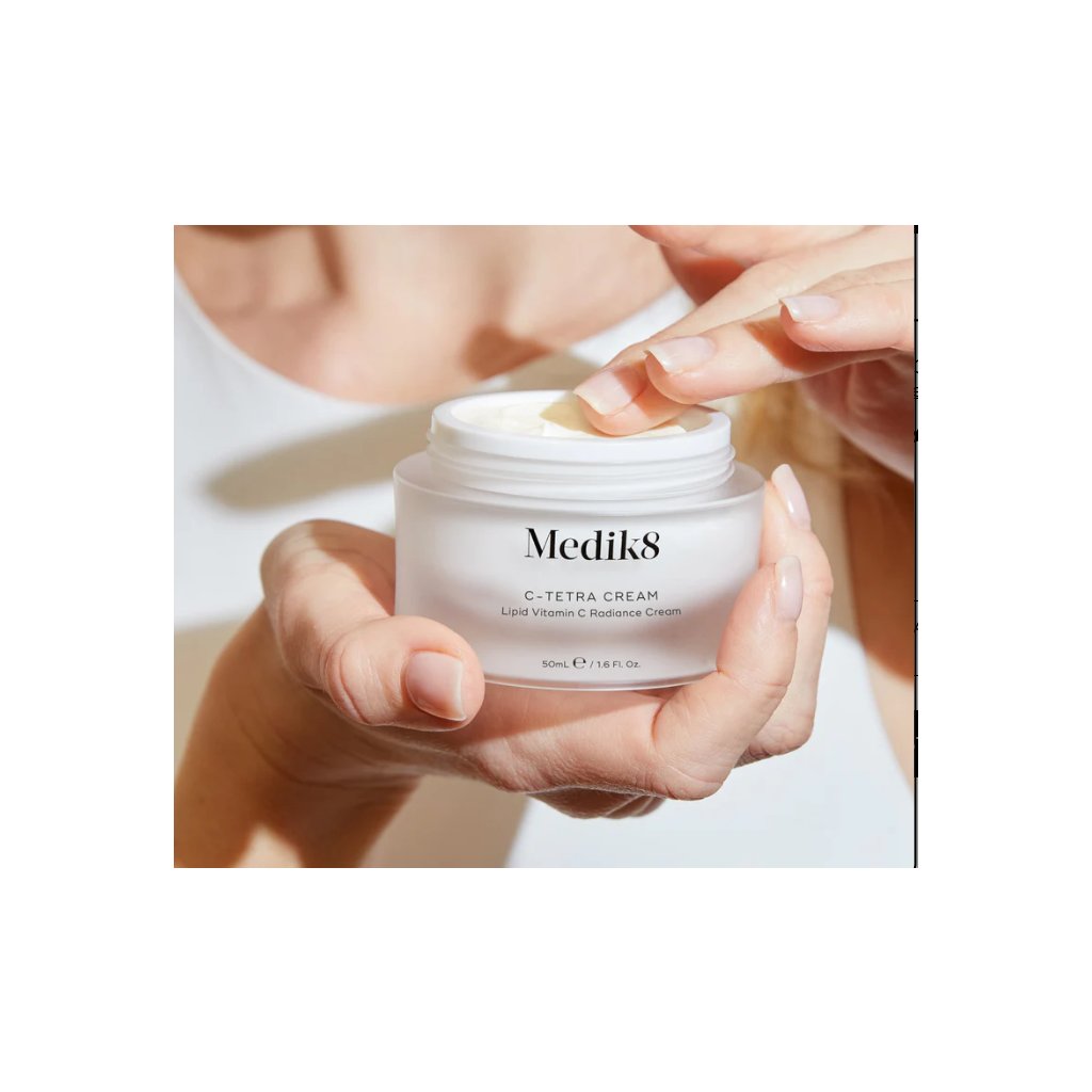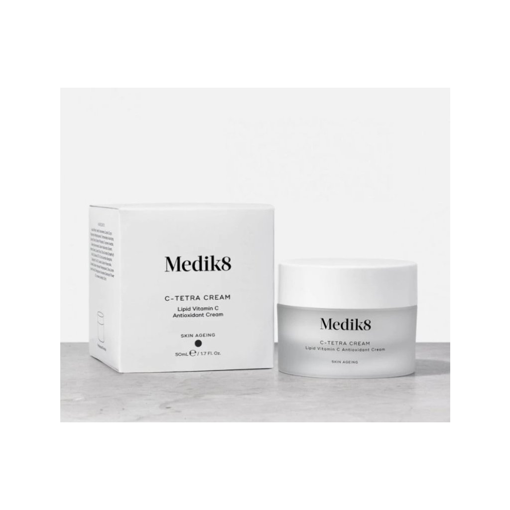 C-Tetra Cream pomáhá obnovit vzhled pleti a zářivost, zatímco chrání před viditelnými účinky stárnutí způsobenými environmentálními stresory. To vše díky prokázané antioxidační síle původního C-Tetra séra od Medik8, tentokrát v hedvábném a výživném krému.