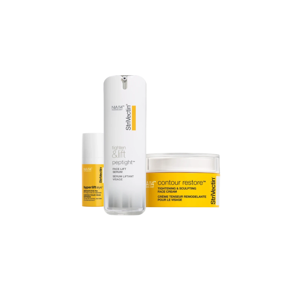 StriVectin sada je kompletní řešení pro pleť, která ztrácí pevnost, pružnost a definované kontury. Tato sada kombinuje okamžitý efekt vyhlazení s dlouhodobými liftingovými a zpevňujícími účinky, které jsou charakteristické pro technologii NIA-114 a pokročilé peptidové systémy StriVectin.