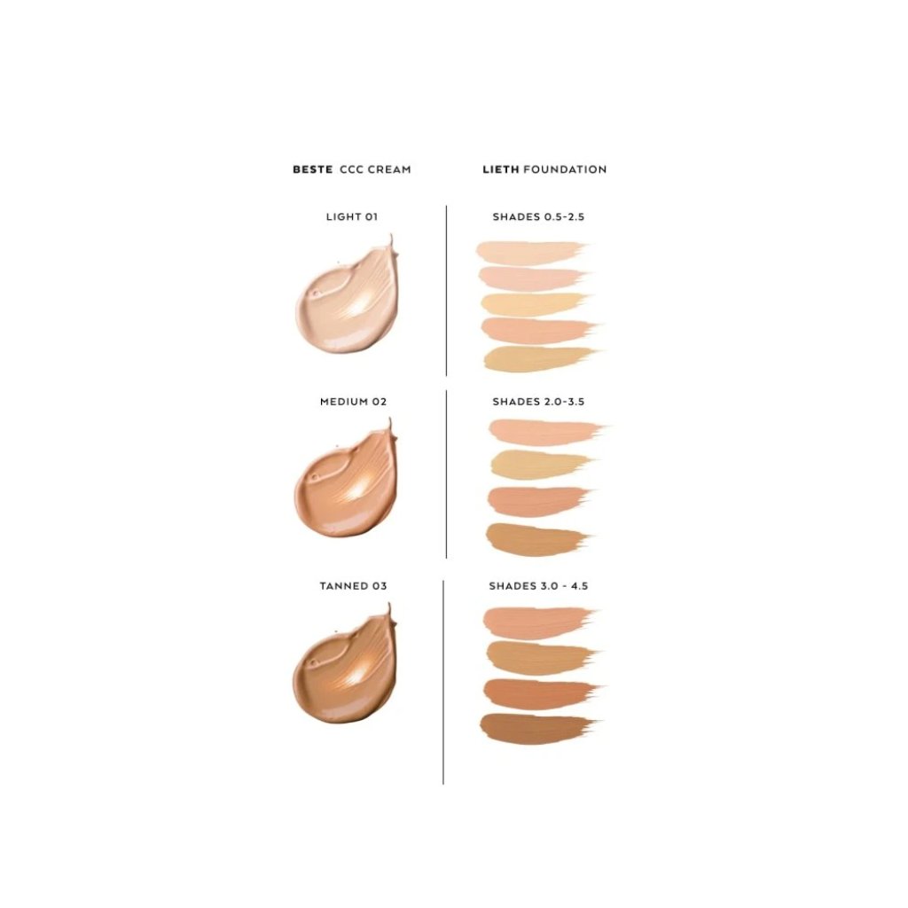 Pro světlé až střední tóny pleti, středně béžová s hřejivým žluto zlatým pigmentem.